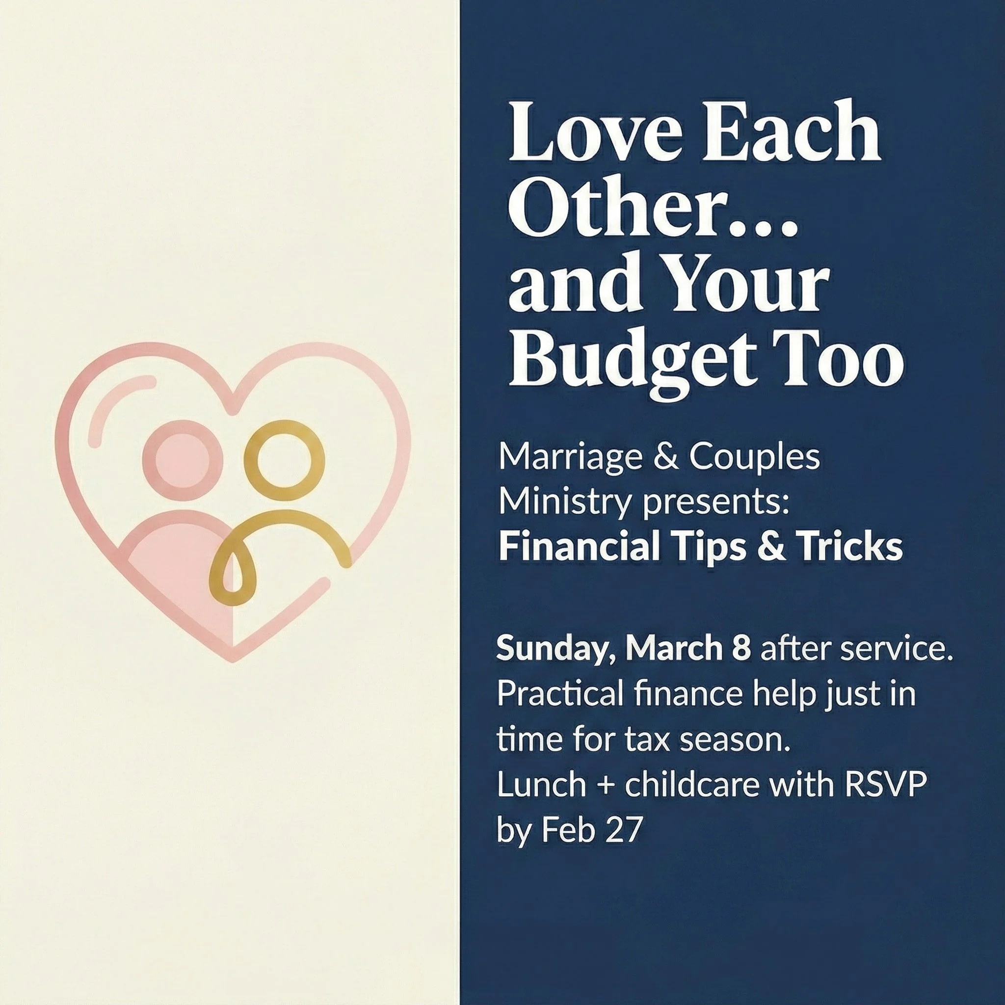 Whether you’re dating, newlyweds, new parents, or empty nesters, come learn simple ways to strengthen your financial stability as a couple.