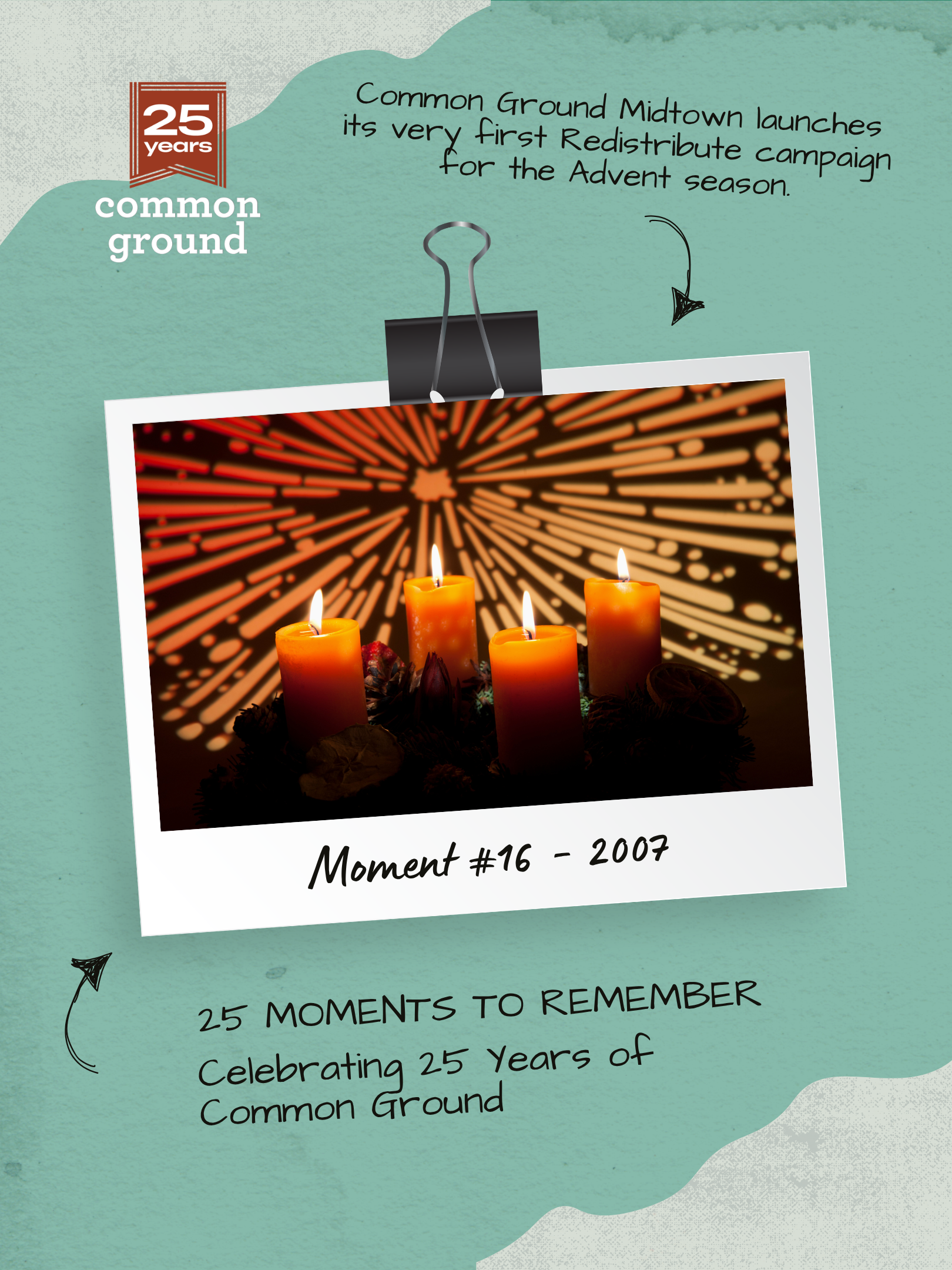 In 2007, Common Ground Midtown began a new Advent tradition of partnering with local and global ministries, inviting the congregation to give in support of their work.