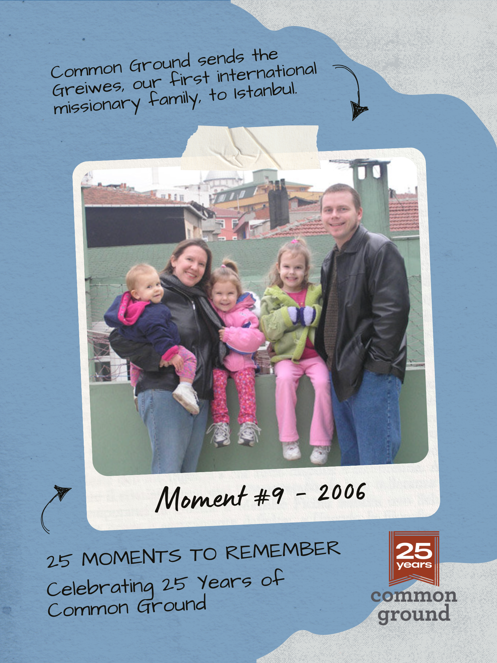 It was the first time we formally stepped into the role of an international sending organization. In those early years, we were still learning what it meant to care well for missionaries on the field. There were challenges and growing pains, yet this step marked an important expansion of our sending impulse beyond church plants and into global mission. During their time in Turkey, Common Ground also sent a number of short-term teams to visit and serve alongside the Greiwe family.